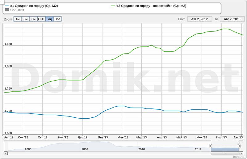 Данный срез позволяет предположить, что снижения цен на квартиры в новостройках бизнес и премиум-класса до конца 2013 года ожидать едва ли стоит, а вот в сегментах эконом и социального жилья в новостройках снижение цен к концу года вполне вероятно. Правда, происходить это снижение будет, скорее всего, неравномерно, усугубляя расслоение рынка. Более масштабное снижение цен при сохранении существующей финансово-экономической ситуации в стране, возможно разве что к середине следующего года.