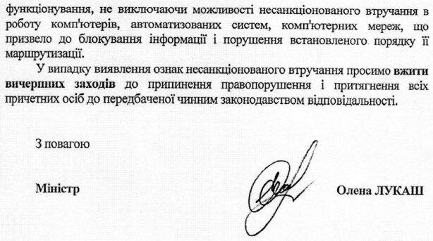 В сообщении отмечалось, что тщательный осмотр программного обеспечения и анализ ситуации подтвердил несанкционированное вмешательство в работу компьютерного оборудования, автоматизированных систем и компьютерных сетей Министерства юстиции, что привело к блокированию информации и нарушению установленного порядка ее маршрутизации.
