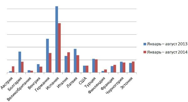 Согласно статистике Tranio.Ru, из 14 стран, популярных среди российских покупателей, количество заявок на недвижимость с января по август 2014 по сравнению с предыдущим годом понизилось в 8 странах. При этом вырос спрос на недвижимость в Австрии, Италии, Финляндии, Франции и Эстонии. Количество заявок на объекты в США осталось неизменным.