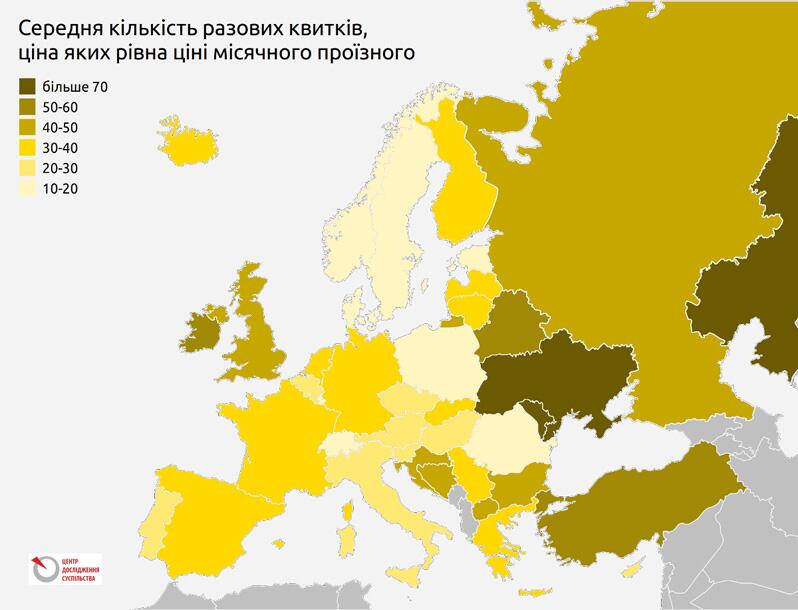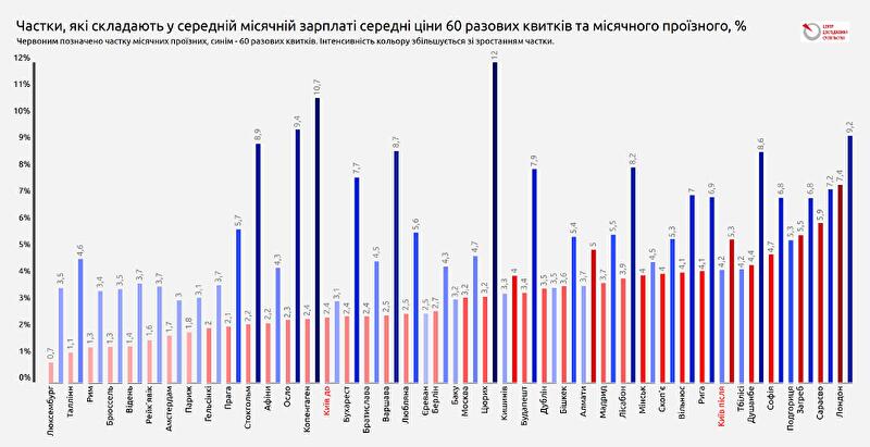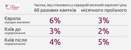 Якщо порівняти тарифи з середніми зарплатами, бачимо, що частка разових квитків наблизиться у Києві до середньоєвропейських значень, тоді як частка місячних проїзних стане однією з найбільших у Європі.
