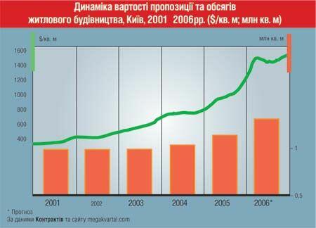 Инвестирование в жилую недвижимость сохраняет актуальность, несмотря на то, что в первом полугодии новое жилье практически не дорожало. По данным аналитического отдела строительно-инвестиционной компании «Київ Житло-Інвест», стоимость квадрата на первичном рынке в мае 2006 г. по сравнению с апрелем увеличилась лишь на 1,4% (инфляционный рост), составив $1146 за кв. м для эконом-класса, $1881 — для бизнес-класса и $4821 — для премиум-класса.