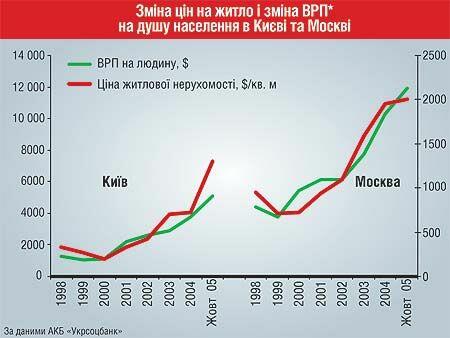 По подсчетам Наймана, в 2005 году киевляне вложили в строительство около $2 млрд. По его версии, произошло это по причине ревальвации гривни и прогнозов о 30-50% подорожании жилья. Но после горячего лета-2005, когда цены на киевские новостройки росли на 7-8% ежемесячно, ситуация изменилась. С октября темп роста цен замедлился — строители «выбрали» платежеспособный спрос. Сейчас обычный киевлянин должен 17 лет работать для того, чтобы накопить на однокомнатную квартиру площадью 55 кв. м. Для сравнения: житель Мюнхена в среднем тратит на приобретение недвижимости лишь пять годовых зарплат.
