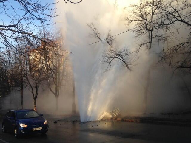 Как сообщал "Обозреватель", 14 января на улице Академика Филатова в Киеве, возле пересечения с Ивана Кудри, на проезжей части забил 10-метровый "гейзер".