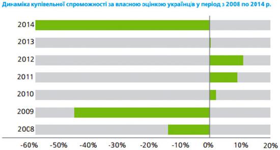 Більшість респондентів негативно оцінює економічну ситуацію. За цим показником країна повернулася до кризового 2009 року - тоді також більше 70% опитаних оцінили економічну ситуацію негативно. Найбільше негативу відчули жителі країни віком 45-54 роки, 74% з яких відзначили, що у 2014 році зможуть витратити менше.