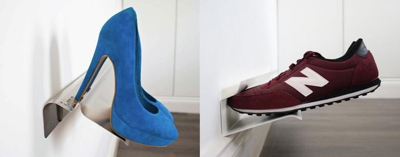1. Настенные горизонтальные держатели для обуви Shoe racks from J-Me в двух вариантах – для обуви с каблуком и без. Могут использоваться на стене в прихожей, в шкафу и т.д. Легкие, легко ухаживать, занимают минимум места.