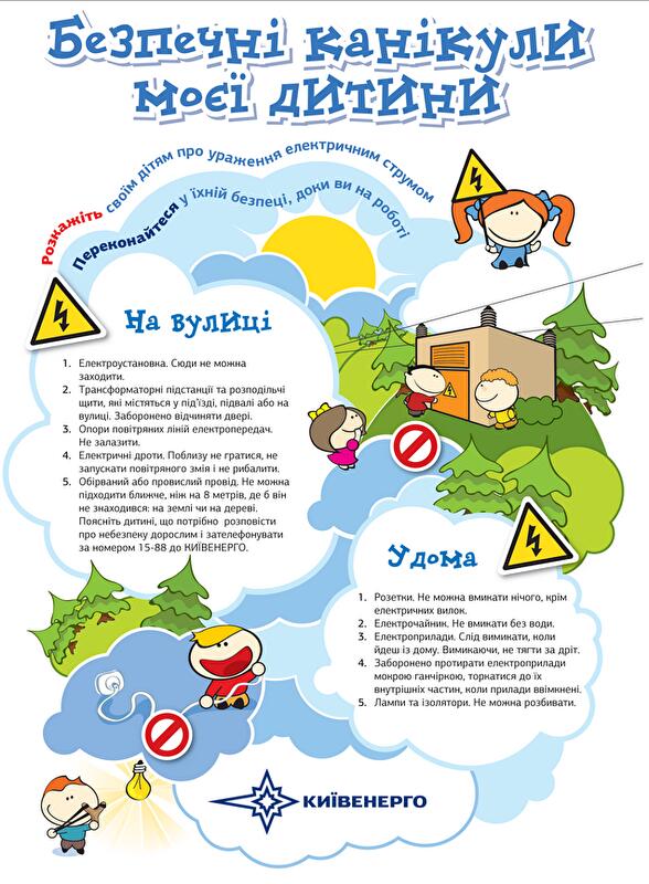 В “Київенерго” розробили правила поводження дітей з електричною енергією вдома та на вулиці. Вони актуальні не тільки в період шкільних канікул, проте саме влітку школярі часто залишаються без нагляду дорослих та можуть втрапити в халепу.