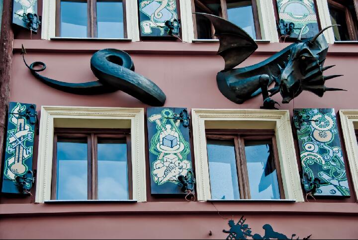 Культурная столица Украины полна контрастов, среди которых модерновые дома и готические костелы, высоченные соборы и приземистые домики. Этот дом — уникален тем, что его фасад украшает скульптура дракона с таинственным часовым механизмом. Внутри находится ресторан, посвященный львовским легендам.