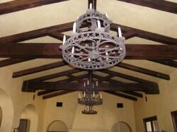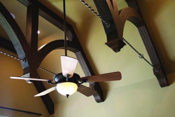 На кухонные балки часто монтируют крючки, различные держатели, на которые можно повесить кухонную утварь. Балка, расположенная над барной стойкой, может быть оснащена специальными держателями для бокалов. В комнатах довольно часто в декоративные потолочные балки встраивают светильники или люстры .