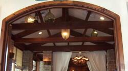Кроме того, важно помнить, что декоративные потолочные балки способны визуально изменять геометрию помещений. Они могут удлинять и расширять пространство. Иногда ими украшают лишь небольшие участки потолка, выкладывая различные фигуры. Часто такие конструктивные элементы используют для разделения помещения на зоны. Чтобы визуально приподнять потолок, можно использовать балки, переходящие на стены. При этом на стенах могут размещаться не сами балочные конструкции, а небольшие планки, подходящие по цвету. В том случае, если потолки слишком высокие, декоративные элементы можно расположить не под самым потолком, а значительно ниже. Это придаст помещению уюта и упорядочит его.