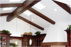 Сейчас подобные потолочные элементы носят не функциональный, а декоративный характер, именно поэтому их и называют декоративными. Декоративные потолочные балки – это простой, недорогой и легкий в монтаже способ сделать потолок необычным и оригинальным. С помощью «пустотелых» конструктивных элементов можно замаскировать провода , идущие по потолку. Часто подобные конструкции используются как коробы для установки светильников. Декоративные балки незаменимы на чердаках и на мансардах, они делают помещение более гармоничным и вносят в пространство некую упорядоченность.