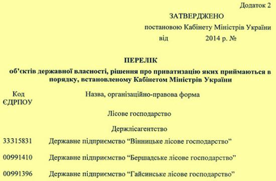 Кабмин может сделать довольно резкое движение: отдать в частное пользование национальное богатство страны - лесной фонд. Согласно Лесному кодексу, леса - это объект права собственности украинского народа. От его имени право собственности на них реализуют государственные и муниципальные власти.