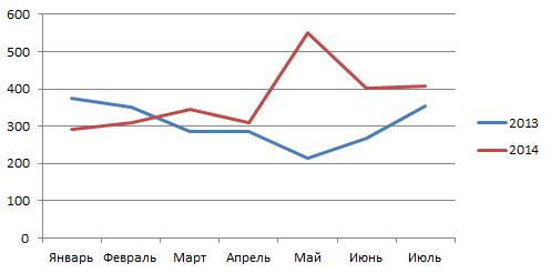 | Июль | 72 | 139 | 65 | 108 | 23 | 407 |