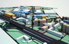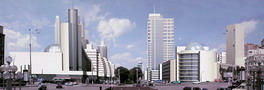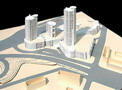 Однако, исходя из того, что жилье, расположенное возле оживленной магистрали, не сможет считаться престижным и комфортным, проектом предполагается строительство вдоль дороги ряда зданий с общественными функциями, в том числе 30-этажного офисного центра, который должен стать доминантой.