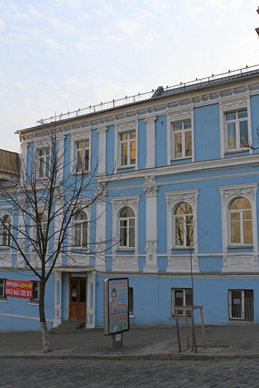 Роскошный особняк на ул. Трехсвятительской, 5/1, построен в средине ХIХ века. Голубое здание с ажурной лепниной и колоннами, больше напоминает кукольный домик в дорогущей упаковке. Принадлежало оно купцу Кондрату Ховалкину. В истории Киева его больше помнят не как успешного предпринимателя, а как главного подрядчика при строительстве Владимирского собора. Его судьба сложилась печально. Оставшись вдовцом, он сосредоточил всю свою любовь и заботу на единственной дочери, ради которой и начал строить дом. Но жить в особняке купцу не пришлось, поскольку дочь внезапно скончалась. После трагедии он потерял смысл жизни и отправился в Голосеевскую пустынь, где стал монахом и именовался Эразмом.