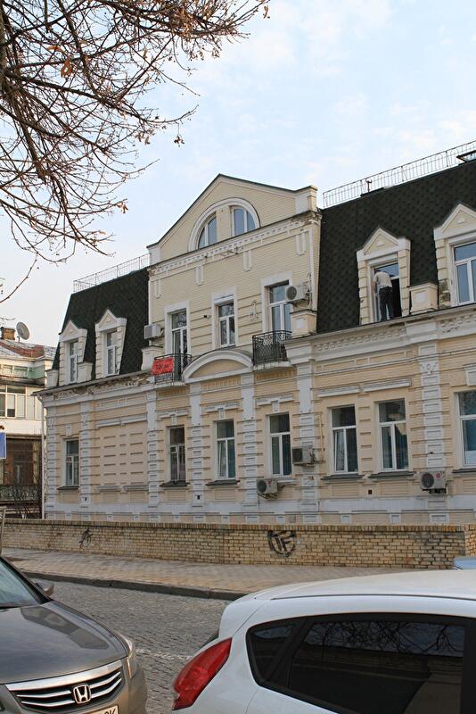 Скромный двухэтажный особняк на ул. Трехсвятительской, 7, был построен в начале ХХ века на территории усадьбы Александровского костела, который и доныне находится в двух шагах от дома. Зачастую в нем можно было встретить приезжих прихожан, причем далеко не бедных, ведь из-за близости к церковным святыням и размещения в центральной части города апартаменты в доме были весьма востребованы. Само здание построено в стиле позднего модерна, потому его отличительной особенностью является наличие на фасаде естественных, "природных" линий. Кстати, окна здания выходят на великолепный парк "Владимирская горка". Неподалеку находится Министерство иностранных дел Украины.