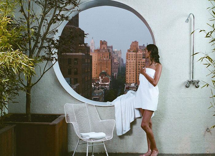 В нью-йоркском отеле Maritime тоже решили, что гостям будет приятно принять душ вдали от суматохи, но с красивым видом на город.