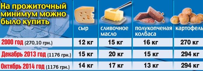 На сегодняшний день прожиточный минимум составляет 1176 грн./месяц - мизерная сумма! И это неудивительно, если учесть, что до 2012-го он рос пять раз в год, в прошлом году - всего два, а в нынешнем и вовсе ни одного. А ведь инфляция и девальвация национальной валюты происходит стремительными темпами!