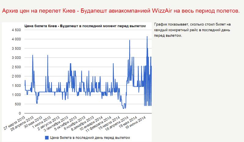 С помощью сервиса Flyscaner можно отследить как менялась цена на перелет Киев - Будапешт авиакомпанией Wizz Air на весь период полетов.
