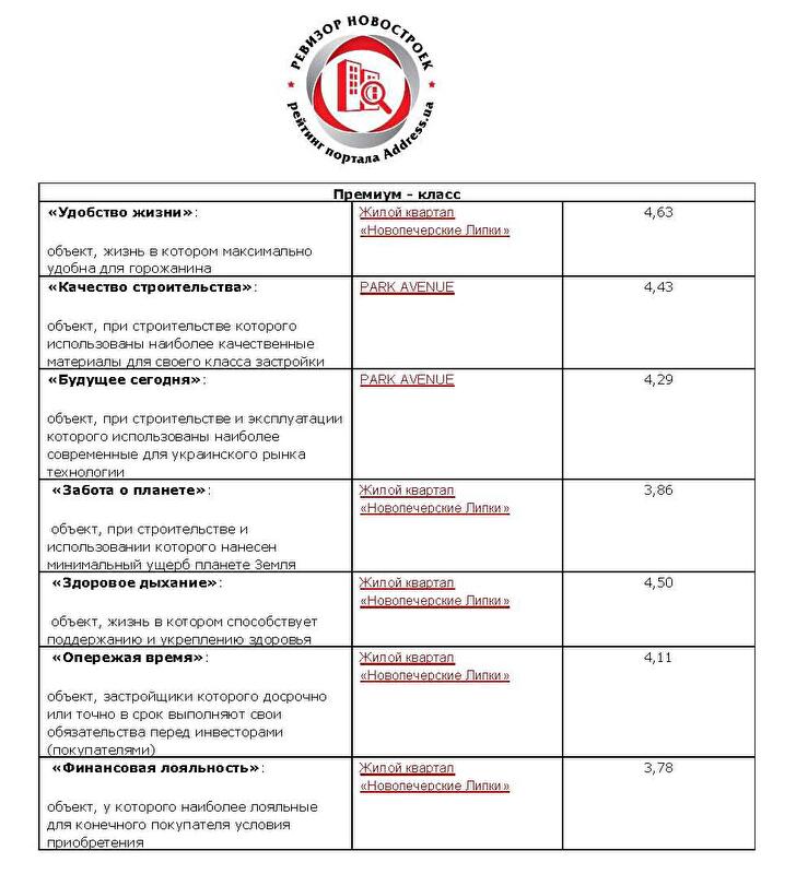9 июля 2014 г., были подведены итоги независимого и некоммерческого исследования рынка жилых новостроек Киева «Ревизор новостроек», который организовал портал поиска недвижимости Address.ua.