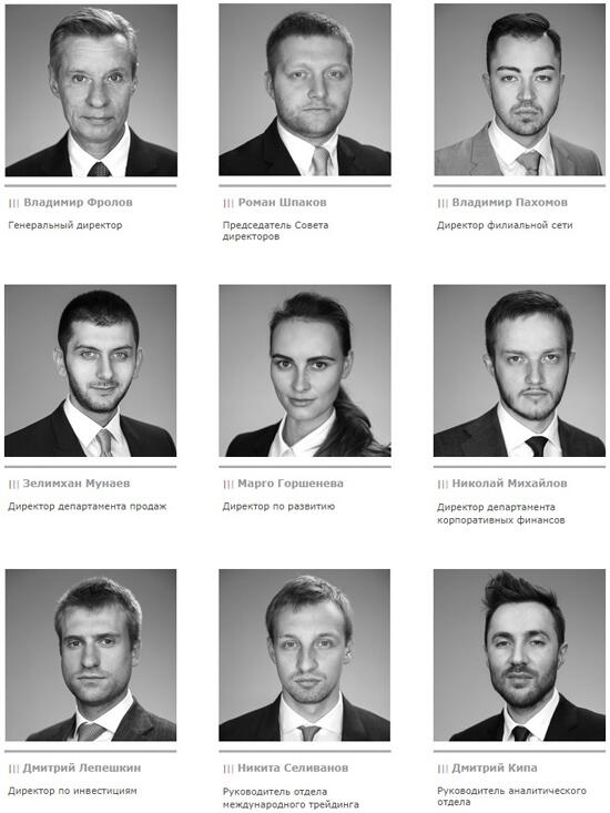На сайті компанії є фото менеджерів та їх посади, але нема біографії жодної особи. По суті, клієнт отримує мінімум інформації про людей, які беруться управляти його коштами. Навіщо приховувати цю інформацію, незрозуміло, але можна зробити відповідні припущення.