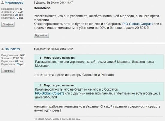 Проте навіть ця діяльність привернула увагу окремих професійних фондовиків. Так, Професійна асоціація реєстраторів і депозитаріїв уже направила лист до Національної комісії з цінних паперів та фондового ринку "Щодо ознак здійснення професійної діяльності на ринку цінних паперів без ліцензії НКЦПФР".
