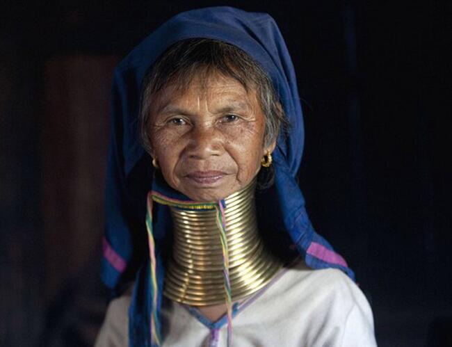 1. Лебединая шея женщин племени Каян У жителей этого племени свое представление о женской красоте. Здесь считают, что чем длиннее у представительницы женского пола шея, тем она ближе к идеалу. В погоне за мечтой маленьким девочкам уже в возрасте 5 лет одевают 6 латунных колец, постепенно добавляя новые, и так до конца жизни.