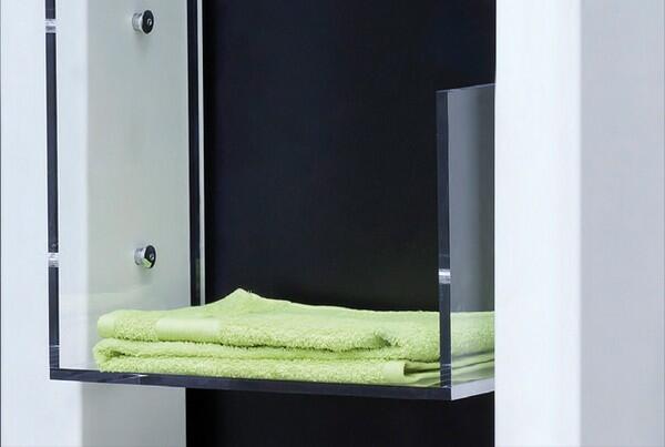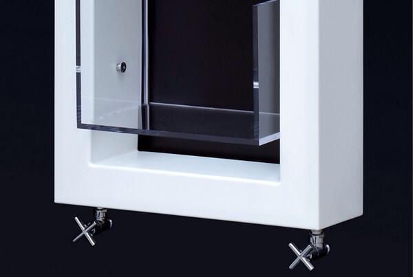 Декоративный радиатор «Boxes» будет достойно смотреться не только в интерьере ванной комнаты, но и в жилых помещениях. Его стальной корпус выполнен в виде большой прямоугольной рамы, дополненной прозрачными акриловыми полочками. Возможно, своеобразный «стеллаж» плохо подходит для хранения книг, чей переплет чувствителен к избытку тепла, но коллекция керамики будет там вполне уместна.