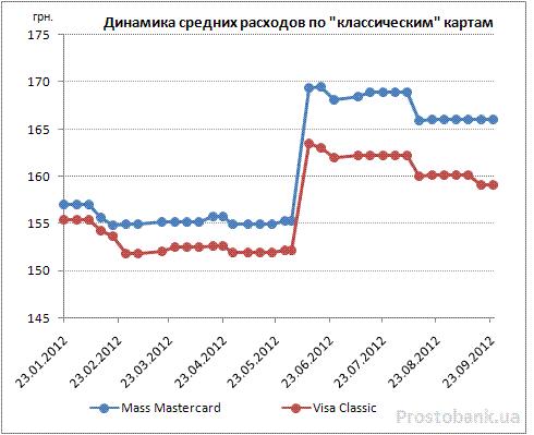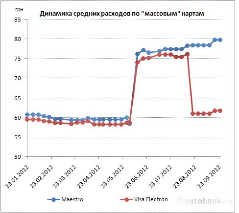 Дополнительной причиной увеличения среднерыночных расходов по картам послужила новая комиссия за ежемесячное обслуживание в 50 гривен, которую установил Проминвестбанк, повлияв тем самым на средние по рынку показатели. В частности, именно это повлияло на значительное увеличение средней стоимости карт Maestro.