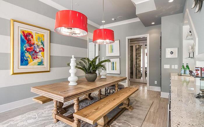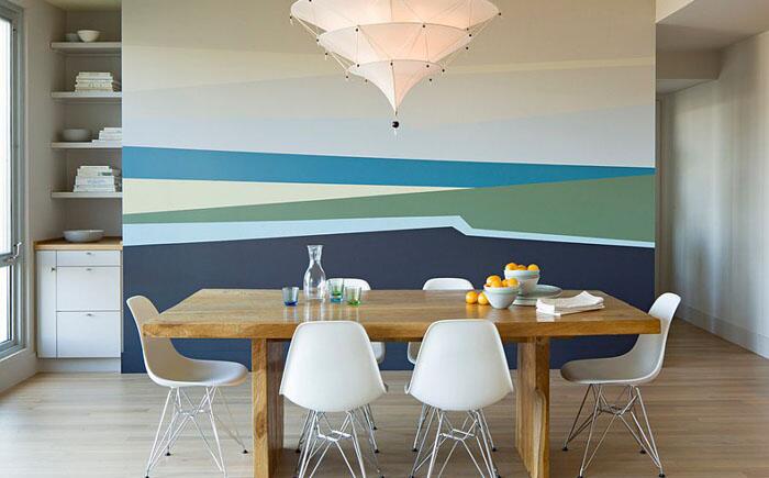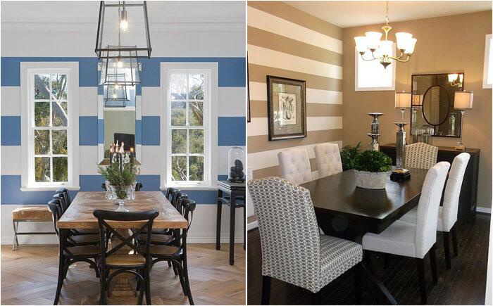 Разноцветный мир: 10 потрясающих столовых с полосатыми акцентными стенами