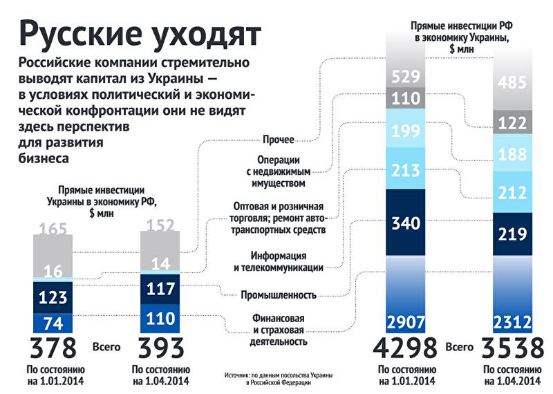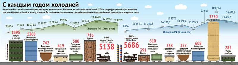 "Во внешнеторговом обороте России доля Украины составляет около 4%, в то время как торговый оборот Украины с Россией — четверть ВВП. Уже по этой причине ни торговые санкции, ни ограничения российского капитала не будут эффективными", — считает Виктор Суслов, бывший министр экономики, в своё время работавший представителем правительства Украины при Евразийской комиссии.