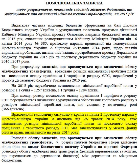Проект госбюджета рассчитывается исходя из того, что минимальная зарплата с 1 января составит 1 257 грн, а с 1 декабря - 1 284 грн. При этом разрыв между должностным окладом работника первого тарифного разряда и минимальной зарплатой предлагается сохранить на уровне 2013 года - 366 грн.