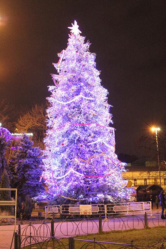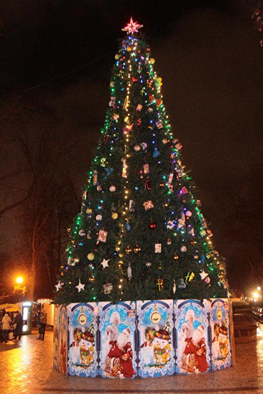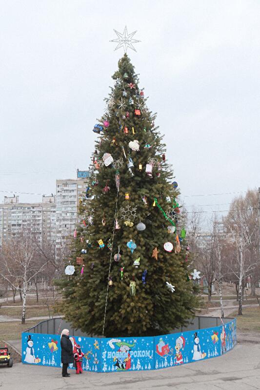 Елочка по традиции размещена в парке Шевченко (ул. Владимирская, 60). Ее высота в этом году составляет всего 8 метров. А украшает его яркая звезда на макушке, 11 светодиодных гирлянд и 327 игрушек: разноцветные шарики, банты, подарки, которые своими руками мастерили сотрудники районного зеленстроя.