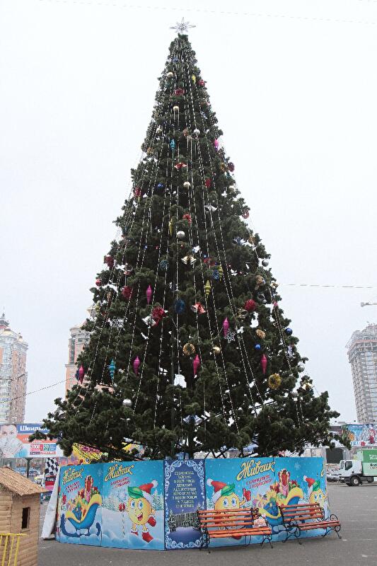 Высота Святошинской елки, на пр. Победы, 112, (напротив РГА) — всего 10 метров. Как рассказали нам в управлении культуры, ее соорудили из искусственных и натуральных веток, поэтому выглядит елка очень красиво и пушисто. Все несколько сотен игрушек в этом году — новые и уникальные: их сделали своими руками дети столицы. Есть изделия из одноразовой посуды, соломы, игрушки с национальным орнаментом и флажок Украины.
