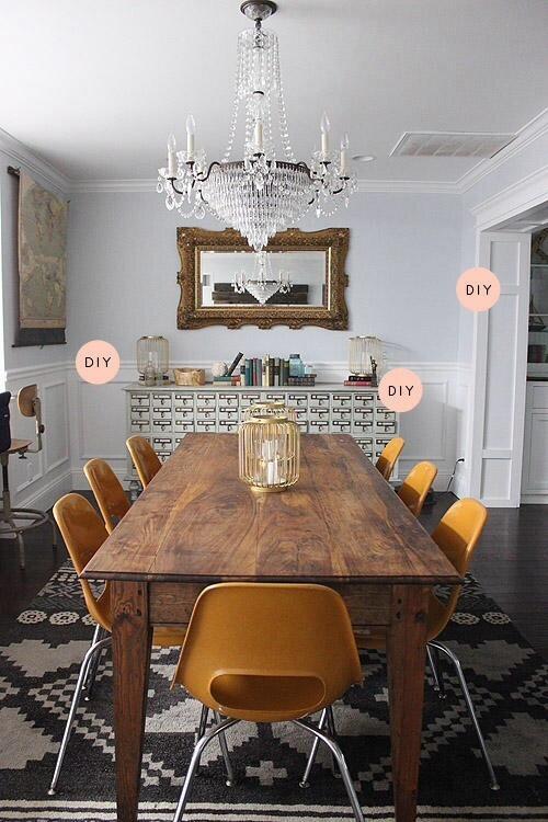 Определившись с цветовой схемой, пара избавилась от громоздкой мебели, делавшей столовую маленькой и мрачной. Их выбор пал на компактную мебель более светлых, освежающих оттенков. Чтобы сэкономить на ремонте, некоторые предметы декора Джереми и Эдри сделали своими руками: это, например, и состаренный белый комод, и висящая на стене деревянная панель.