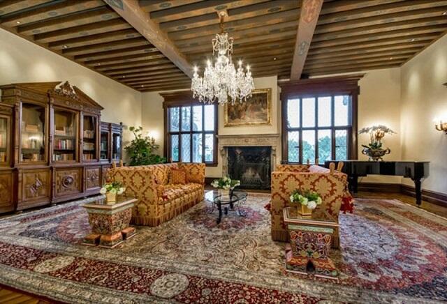 Интерьер резиденции выполнен в утонченном и изысканном «историческом стиле»: здесь невольно вспоминаешь о том, как жили наши предки. В доме очень много элегантных предметов мебели, привезенные из Европы. В настоящее время резиденция выставлена на продажу за 27 миллионов долларов.