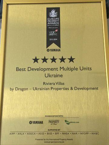 Riviera Villas, клубный поселок под Киевом, принадлежащий международному инвестиционному фонду Dragon-Ukrainian Properties & Development Plc. (DUPD), стал победителем одной из самых престижных европейских премий European Property Awards 2013 в номинации «Развитие объектов жилой недвижимости» (Residential Development Multiple Units).
