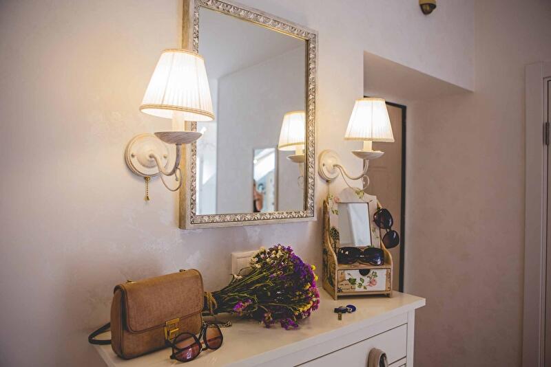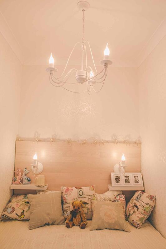 Большинство украшений прошло через шаловливые ручки нашей мастерской: рамки были перетонированы, окошки в спальню из гостиной выкрашены в «правильный» розовый цвет с сизо-белым оттенком. Винтажный декор – моя собственность (осталась небольшая коллекция от папиного антиквариата).