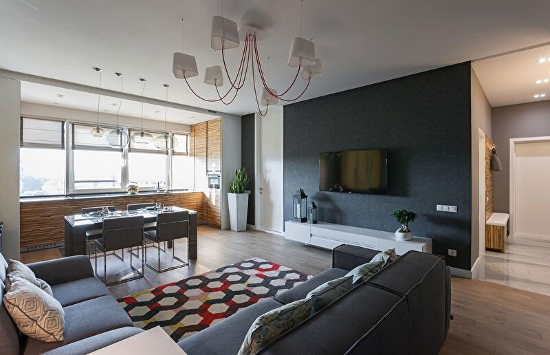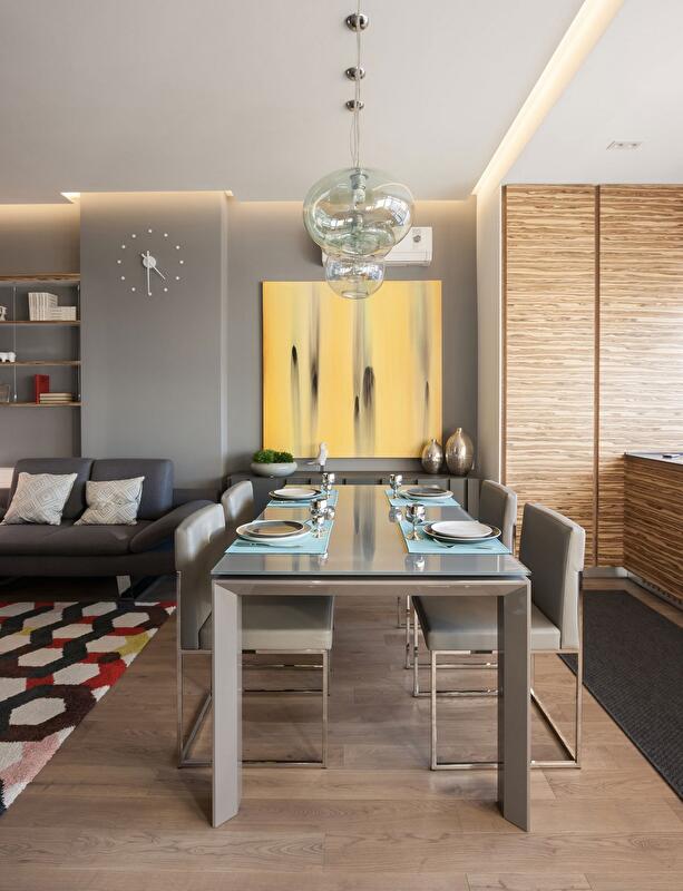 Проект дизайна интерьера под названием +1 Apartment представила архитектурная мастерская Svoya Studio в 2014 году Днепропетровске, Украина. Просторная однокомнатная квартира в Днепропетровске была успешно преобразована в двухкомнатную, не утратив визуального объема. Планировка квартиры заключалась в преобразовании кухни в спальню (со всем соответствующим комплексом работ) и присоединении лождии к гостиной с кухней. В отделке помещений использованы натуральные материалы и сочетание фактур дерева, мрамора и плоскостей стен серого цвета в гостиной и сложного голубого цвета в спальне. Особый уют и тепло в гостиной создает стена из войлока. Общую лаконичность пространства разбавляет яркая и сочная колористика декора, освещения и ковра. Но, пожалуй, самым ярким и ценным акцентом интерьера можно назвать картину антона соколова, контрастно «согревающую» зону столовой.