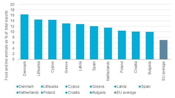 Среди тех, кому запрет РФ грозит сильнее всего, – оказались страны ЕС, так как они имеют самые тесные торговые связи с Россией, которая занимала 2,6% экспорта ЕС в 2013 году. Однако не все одинаково много торговали с РФ: к примеру, доля импорта с Португалии составляла всего 0,4%, в то время как с Литвы – 19,1% – пятая часть от общего объема. Таким образом, ощутить полной мерой российские запреты могут те страны, которые являются наиболее зависимые от экспорта собственной сельскохозяйственной продукции (продуктов питания и живых животных), считают эксперты компании Euromonitor International. Опираясь на данные за прошлый год, опасаться стоит Дании, Литве и Кипру.