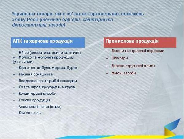 Рассчитывая на начало временного применения с 1 января 2016 года торгово-экономической части Соглашения об ассоциации между Украиной и ЕС, мы в то же время ожидаем, что Российская Федерация в соответствии с прошлогодним постановлением №959 инициирует вывод из режима свободной торговли между Украиной и РФ ряда украинских товаров.