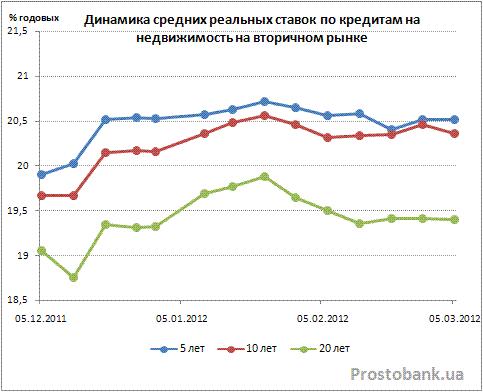 В феврале-марте-2012 средние реальные ставки по кредитам на вторичное жилье впервые с сентября-2011 стали снижаться. И хотя снижение это нельзя назвать впечатляющим, - 0,03-0,1 процентного пункта за февраль или 0,2-0,5 процентного пункта с начала тенденции в коне января-2012, - тем не менее, оно дает надежду на возвращение ипотечных ставок к нисходящей тенденции.