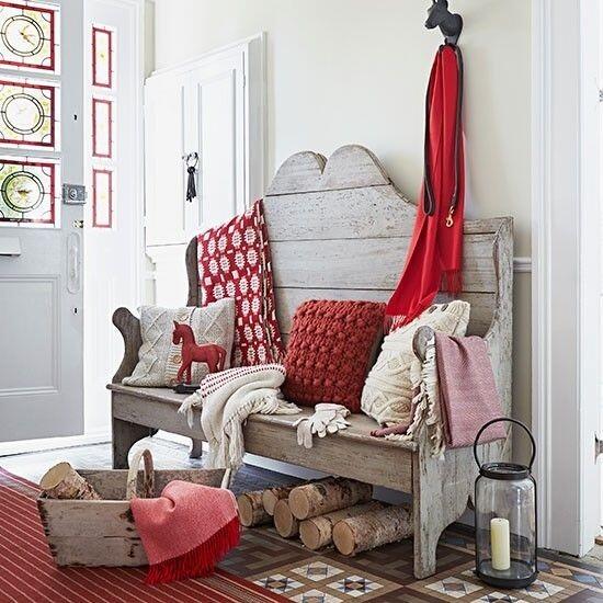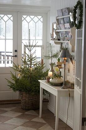 Декорируя интерьер коттеджа нужно не забыть обо всех уголках: и прихожая , и даже терраса перед входной дверью достойны того, чтобы быт нарядными в эти особенные праздничные дни!