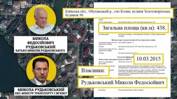 Спостерігати у своє вікно паркани Льовочкіних і Ніконова може Микола Федосійович Рудьковський. Таке ж ПІБ у батька колишнього нардепа та міністра транспорту і зв’язку Миколи Рудьковського. Нерухомість площею 438 квадратних метрів на Золотоворітській, 96 записали на Миколу Федосійовича у березні 2015-го.