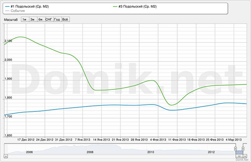 Статистика цен предложений в новых домах в Подольском районе за последние три месяца снизилась на 9,5%; за последнюю неделю выросла на 0,2 %