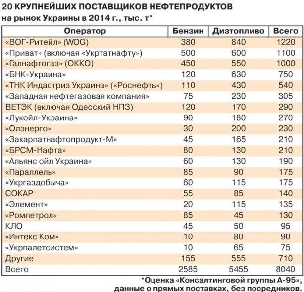 Топливный рынок Украины остается крайне диверсифицированным и высококонкурентным. Такая модель снимает с повестки дня опасения по поводу возможной блокады со стороны России, которая напрямую поставляет хоть и немного, но имеет рычаги влияния на Беларусь — крупнейшего поставщика нефтепродуктов в Украину. Мощностей морских портов и сухопутных коридоров и предложения топлива любых марок более чем достаточно. Основные проблемы связаны с кризисом потребления и ростом теневого рынка, который с одинаковой силой бьет как по рынку, так и по госказне. В 2015 г. рынок продолжит сужаться — разбухшие от налогов и девальвации ценники на АЗС потребителю не потянуть.