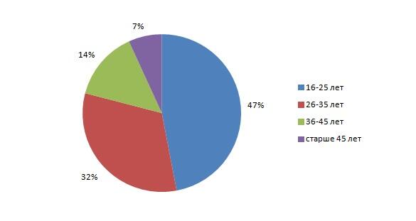По данным карьерного портала rabota.ua, большинство соискателей – это молодежь в возрасте до 25 лет. Таких резюме чуть меньше половины. На втором месте соискатели чуть постарше – от 26 до 35 лет. Их уже 32%. Понятно, что именно молодежь стремится найти работу благодаря Интернету и специализированным ресурсам. Поэтому скромные 7% соискателей в возрасте "за 45" тоже логичны – большинство соискателей этого возраста находят работу по рекомендациям знакомых.