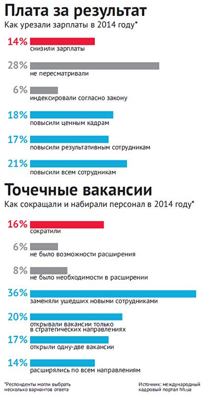 Согласно результатам исследования EY, которое в основном охватывает структуры с иностранным капиталом, заработные платы сотрудникам в 2014 году на 5–25% повысили 62% компаний, а около 24% предприятий дополнительно подкорректировали зарплаты в связи с девальвацией гривны.