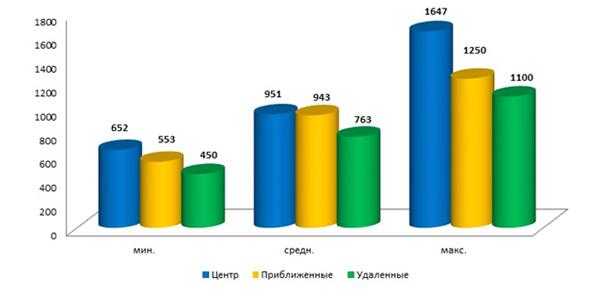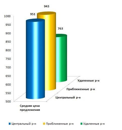 Средняя цена предложения в городе Харькове зависит от месторасположения объекта в зависимости от удаленности от центра города. В феврале 2015 года средняя цена предложения в центральном районе города зафиксирована на уровне – 951 долл.США/кв.м., в прилегающем к центру районе средняя цена составила – 943 долл.США/кв.м. В удаленном районе города Харькова средняя цена в феврале 2015 года – 763 долл.США/кв.м.(рис. 2).