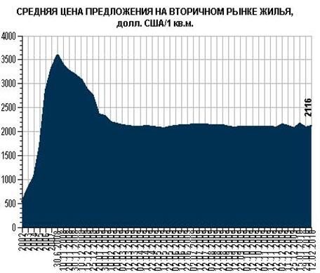 Средняя стоимость вторичного жилья составила $2116 за 1 кв.м. (повышение к предыдущему периоду - 1,34%), что свидетельствует об оживлении рынка после праздничного периода (см. График 1. ).