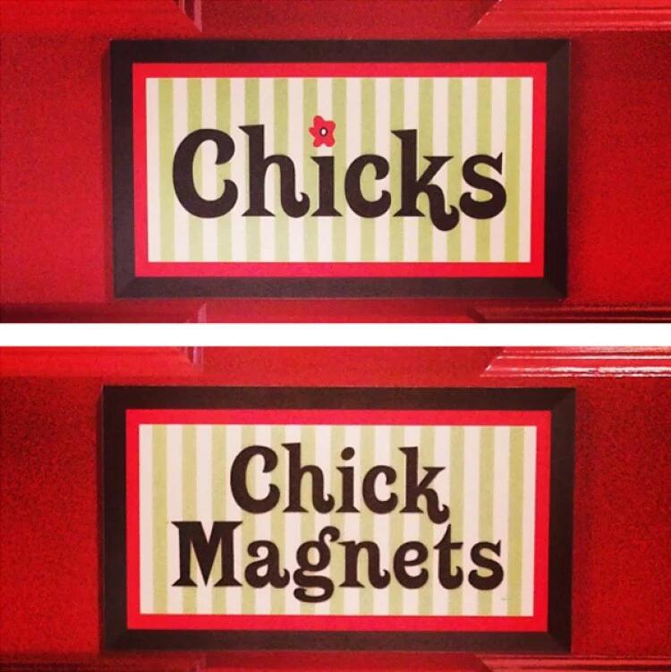 Но есть еще кое-какие вещи, которыми нас может удивить заведение. Это туалетные указатели — согласитесь, они везде разные и должны вписываться в стилистику заведения.